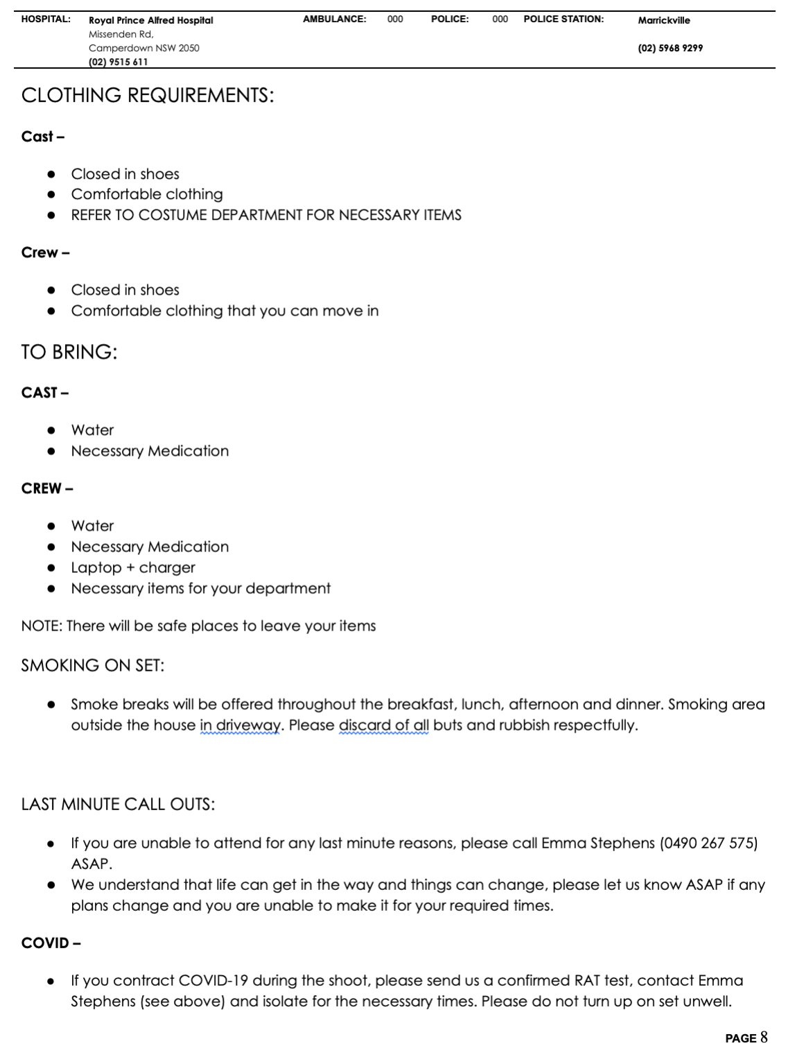 Call Sheet extra info